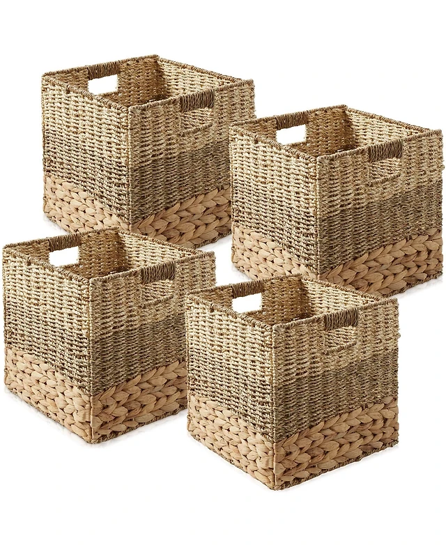 Casafield 13" x 13" Mixed Weave Storage Baskets, Natural - Set of Collapsible Cubes, Woven Bin Organizers for Bathroom, Bedroom