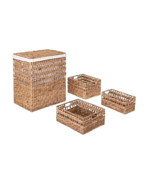 Happimess Bryce Classic Farmhouse Hand-Woven Hyacinth Collapsible Storage Cube Baskets with Handles (Set of 5)