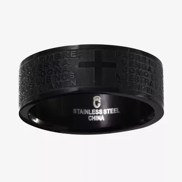 Mens 10MM 1/8 CT. T.W. Natural Black Diamond Stainless Steel Wedding Band