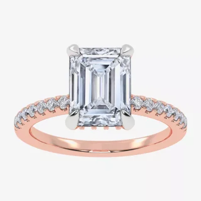 (F-G /Vs2-Si1) Womens 2 1/4 CT. T.W. Lab Grown White Diamond 14K Gold Rectangular Side Stone Engagement Ring
