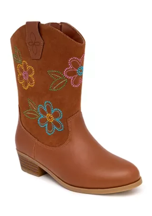 AZALEA WANG Talayah Brown Western Wedge Booties