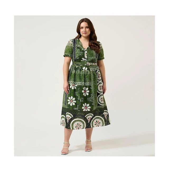 Lands' End Women's Cotton Dobby Smocked Dress with Ruffle Straps