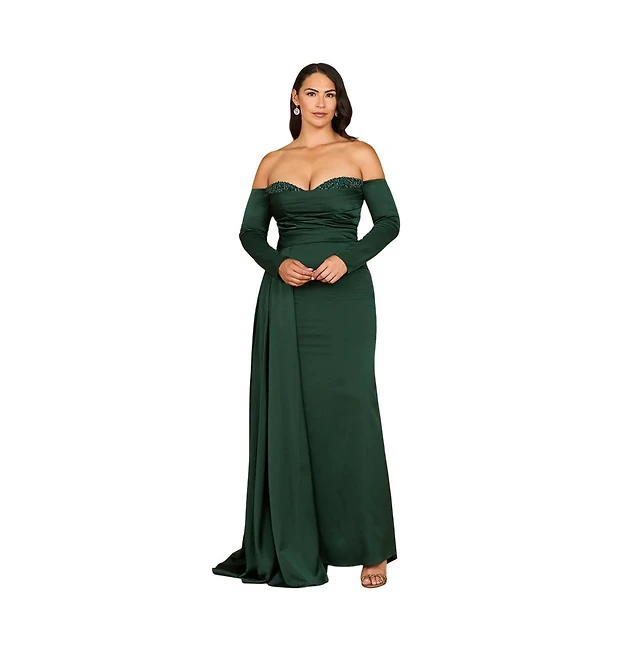 Xscape Women's Long One-Shoulder Ruffle Dress