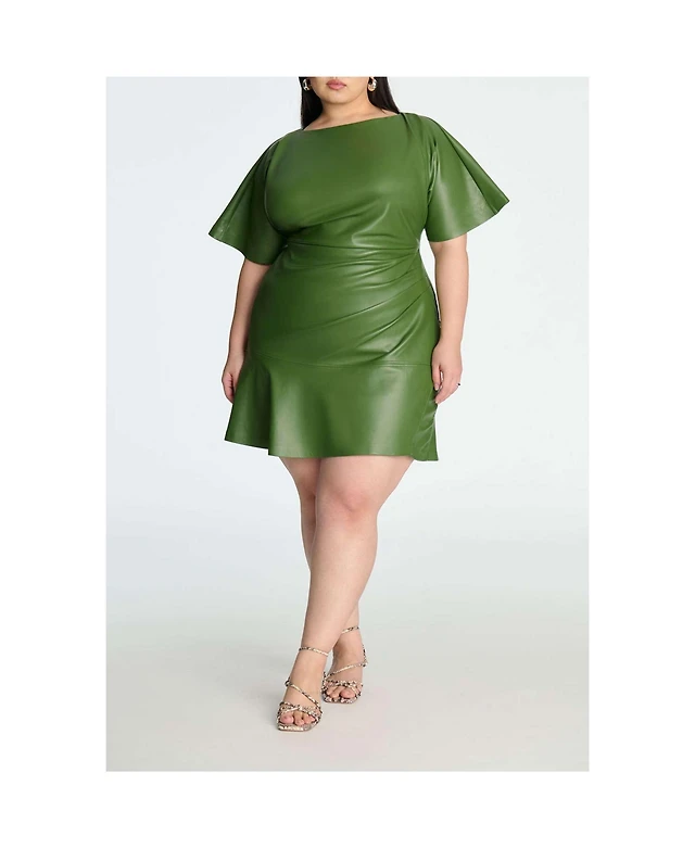Eloquii Women's Plus Tweed Pleated Mini Shirt Dress