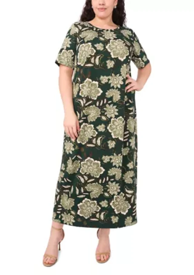 Bob Mackie Womens Plus Sleeveless Sequin A-Line Dress