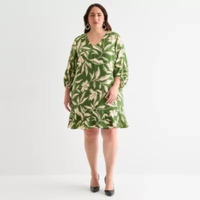 London Times Womens Plus 3/4 Sleeve Floral Shift Dress