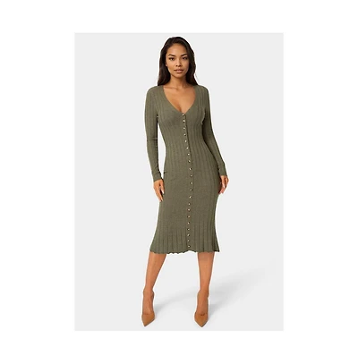Hello Miz Maternity Long Sleeve Ribbed Side Ruched Nursing Dress