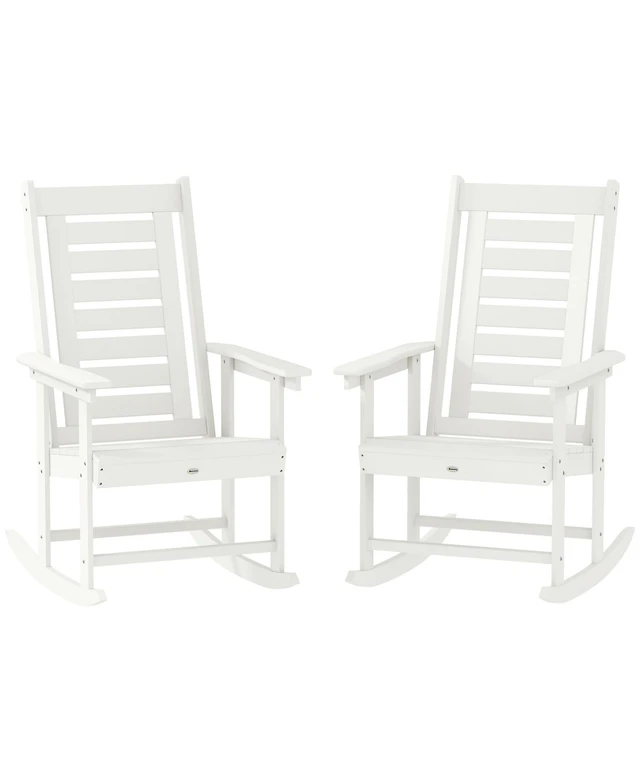Outsunny 2 Outdoor Rocking Chairs, Hdpe High Back Patio Rockers