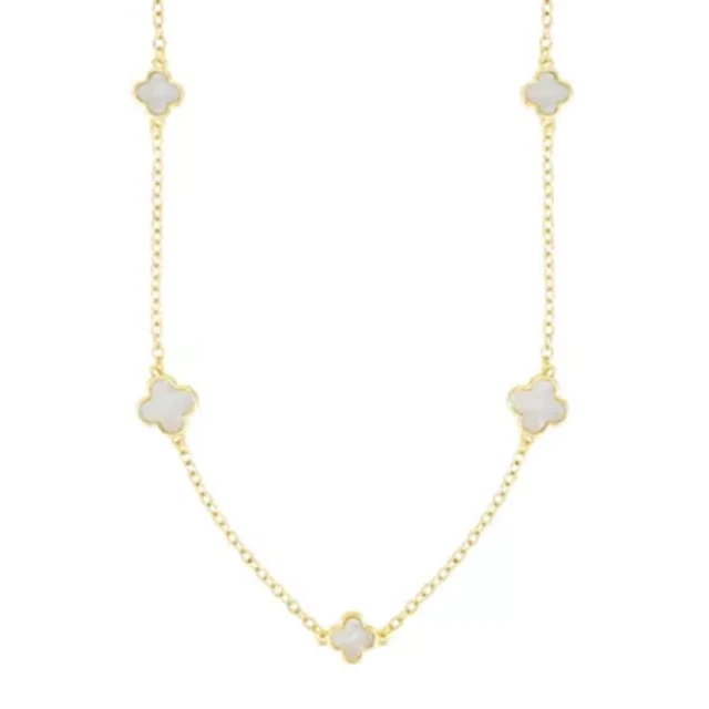 14k Yellow Gold Plated Mother of Pearl Clover Station Necklace