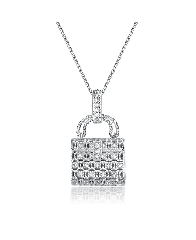 Sterling Silver White Gold Plated with Clear Cubic Zirconia Square Shape Pendant Necklace