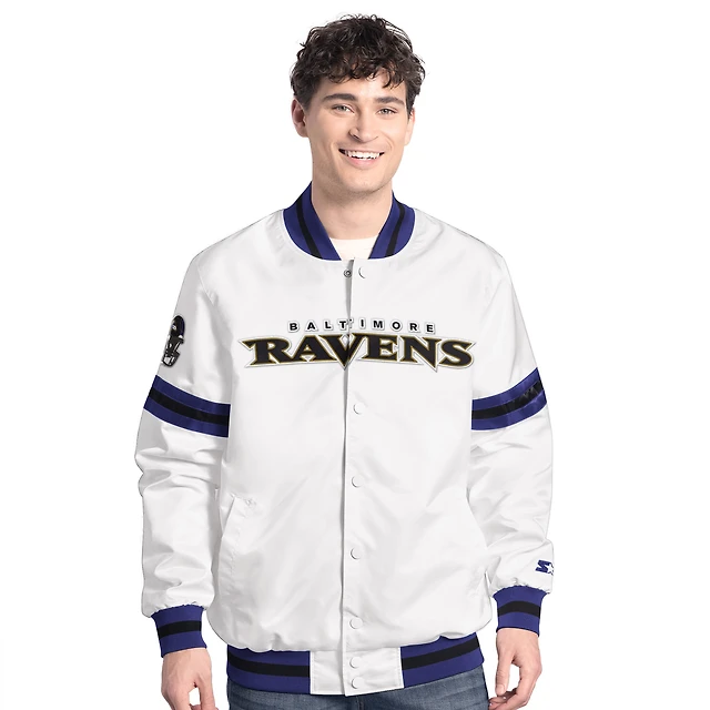 Men's Starter White Pittsburgh Steelers Scout Full-Snap Varsity Jacket