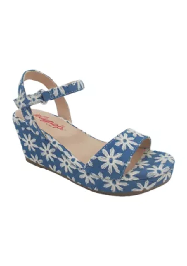 Youth Girls Scenery Denim Daisy Flatform Sandals