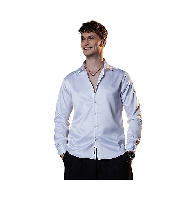 Luchiano Visconti Men's White Multicolor Circular print shirt