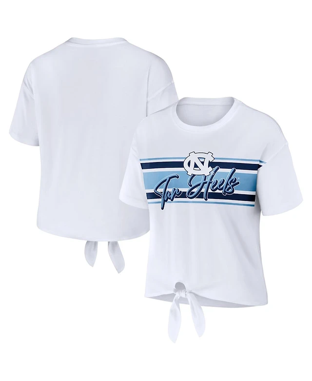Women's Wear by Erin Andrews White Florida A&M Rattlers Striped Front Knot Cropped T-shirt