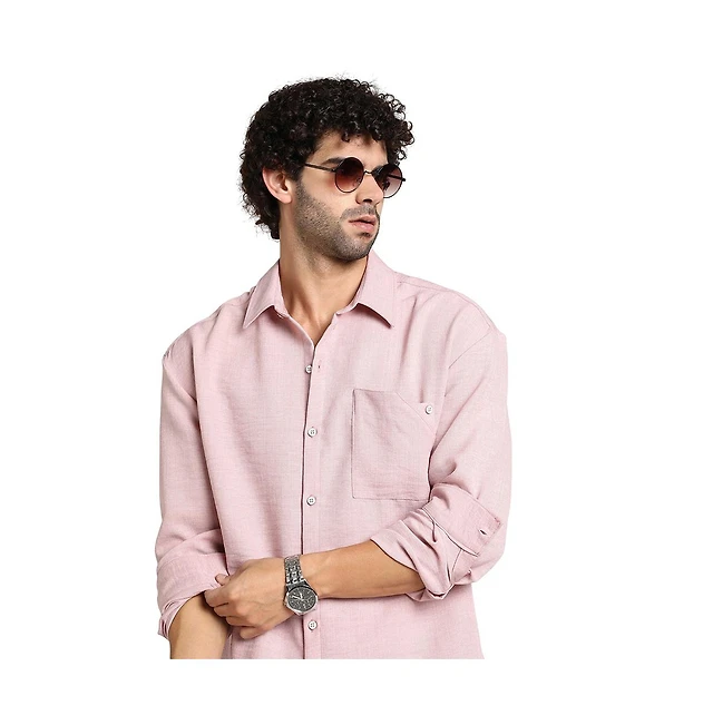 Campus Sutra Men's Blush Pink & Moon Grey Tartan Plaid Shirt