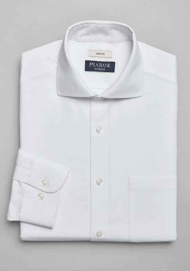 Men's Reserve Collection Slim Fit Spread Collar Herringbone Dress Shirt at Jos. A. Bank, Cream/White