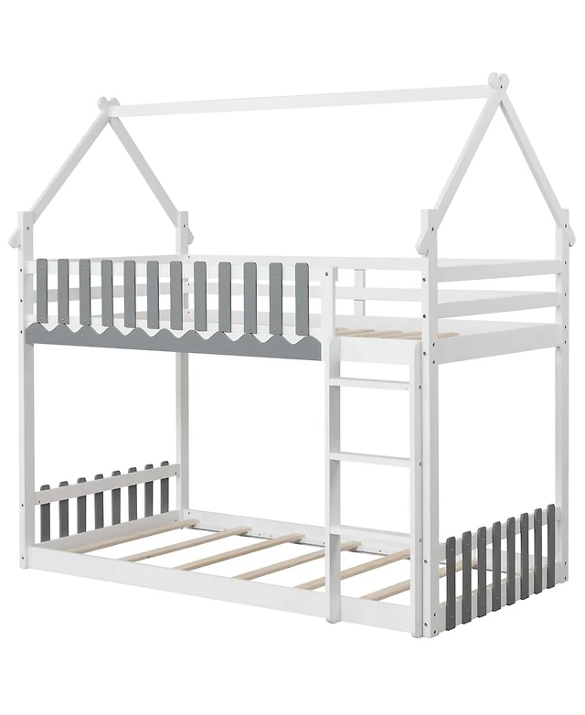 Streamdale Twin Over House Bunk Bed With Fence And Door