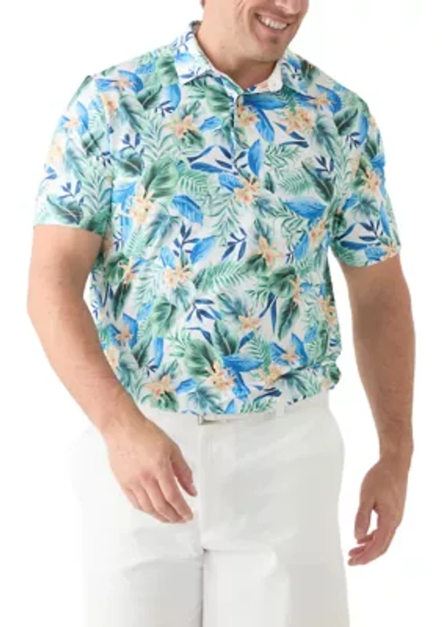 Roundtree & Yorke Big & Tall Performance Golf Club Print Polo Shirt