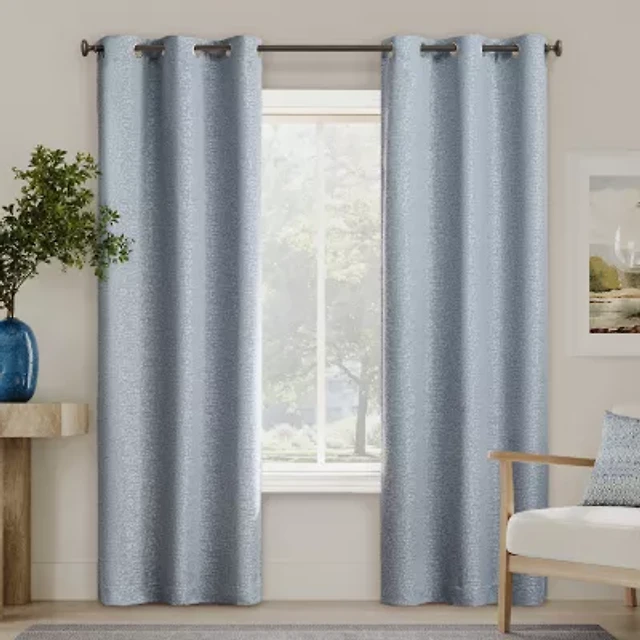 Sun Zero Drayton Slub Detail Magnetic Closure 100% Blackout Grommet Curtain Panel Pair