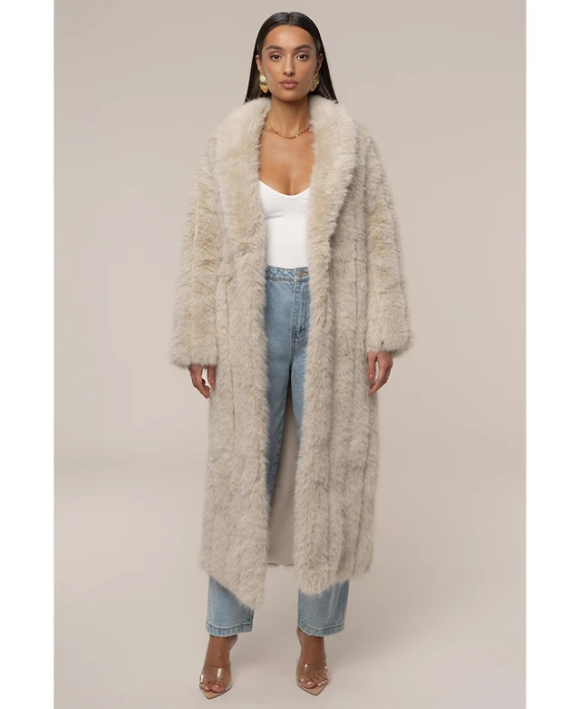 AZALEA WANG Jolene Tan Hooded Faux Fur Coat
