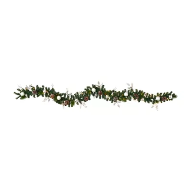 Nearly Natural 6ft. Pre-Lit Indoor Christmas Pine Artificial Garland With 50 Warm White Led Lights And Berries