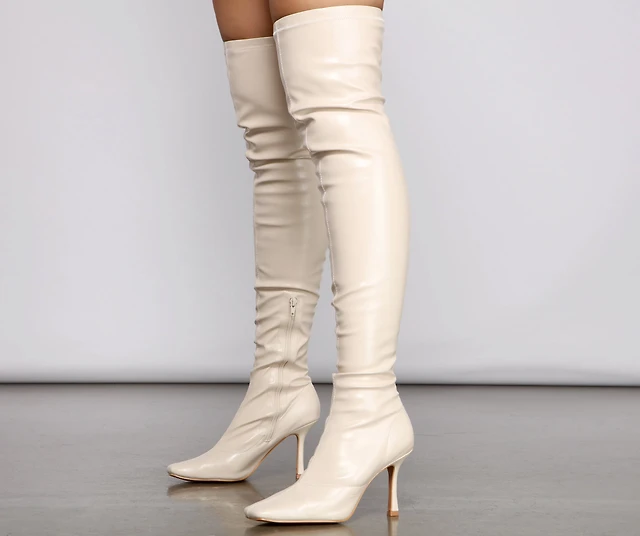 Sleek Strut Faux Leather Fitted Knee-High Boots
