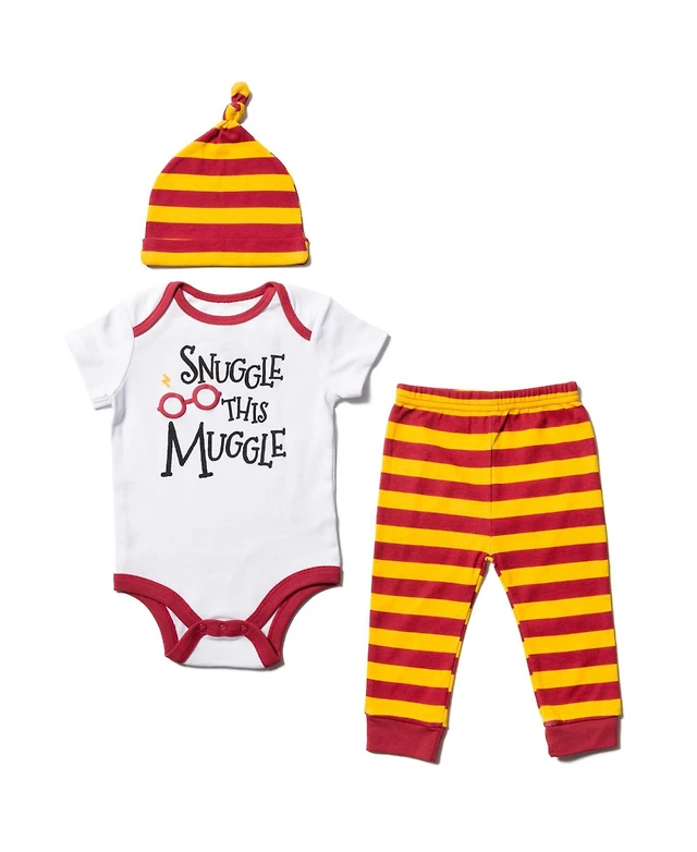 Harry Potter Baby Boys 3 Piece Outfit Set: Cuddly Bodysuit Pants Hat