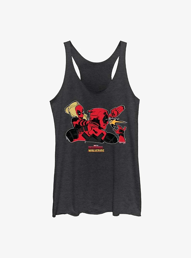 Marvel Deadpool & Wolverine Weapons Explosion Womens Tank Top