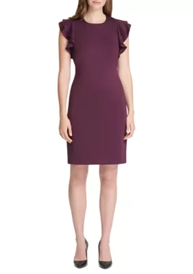 M.m.LaFleur Women's Elbow Sleeves and Square Neckline Faux Leather Sheath Dress