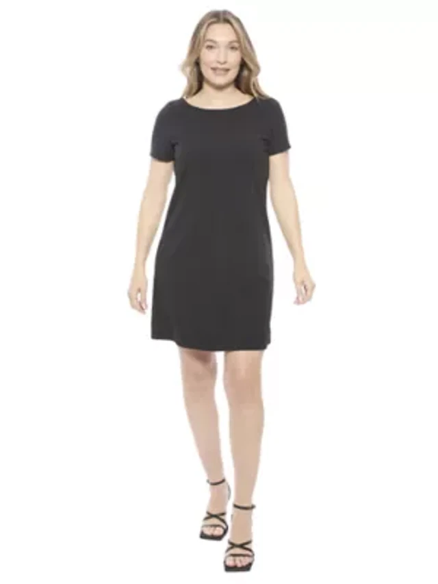Womens Solid Short Sleeve Round Neck Mini Shift Dress