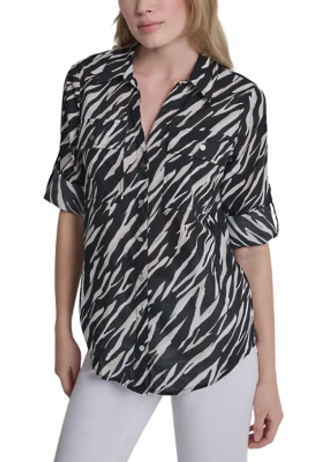 Women's Bubble Chiffon Flutter Sleeve Blouse