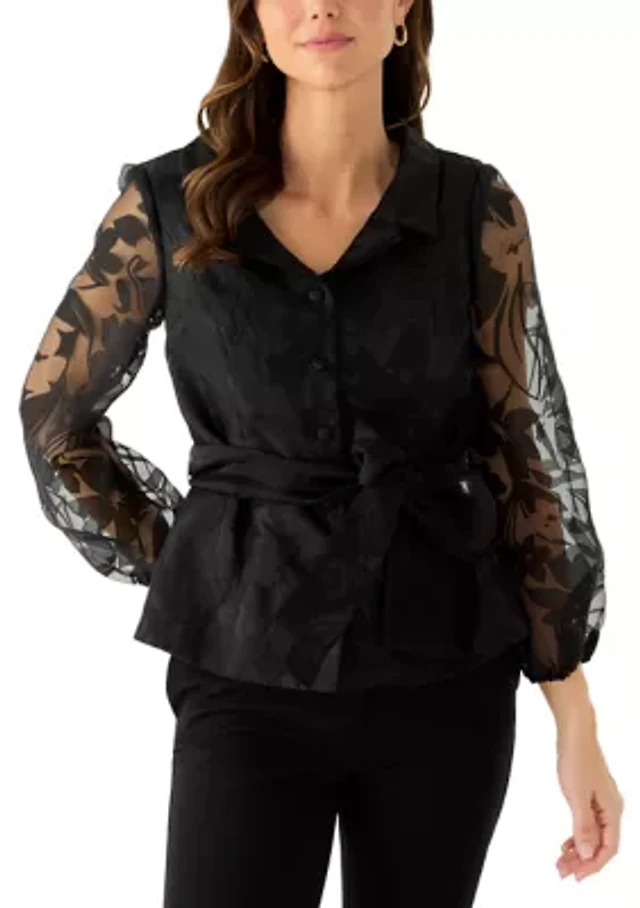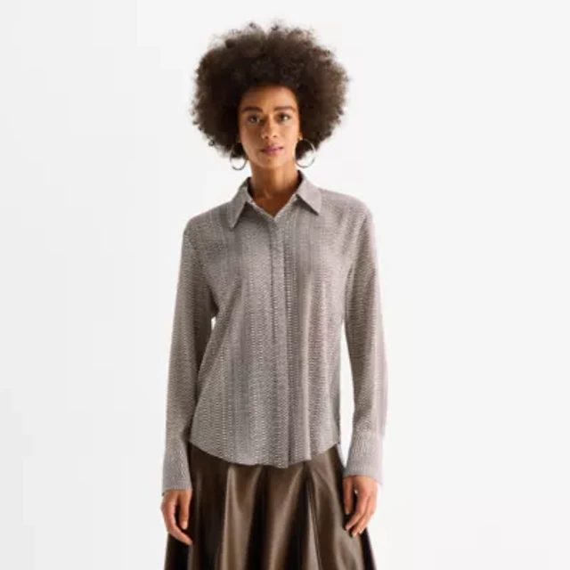 Kasper Women's Button-Front Long-Sleeve Collared Neck Blouse