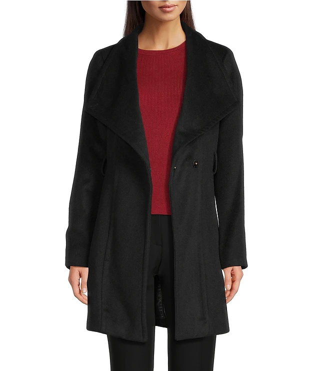 Donna Karan Wool Blend Asymmetrical Wing Collar Belted Wrap Coat