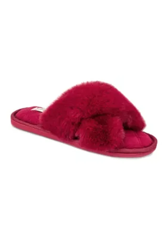 Women's High Plush Cross Slide Slippers