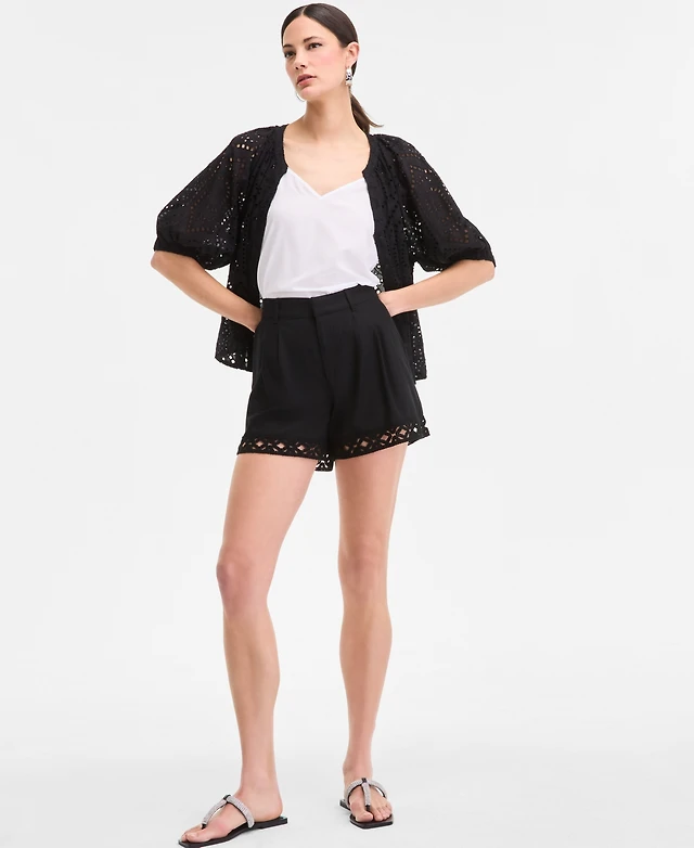 French Connection Womens Eyelet Puff Sleeve Top Eyelet Ruffle Hem Shorts