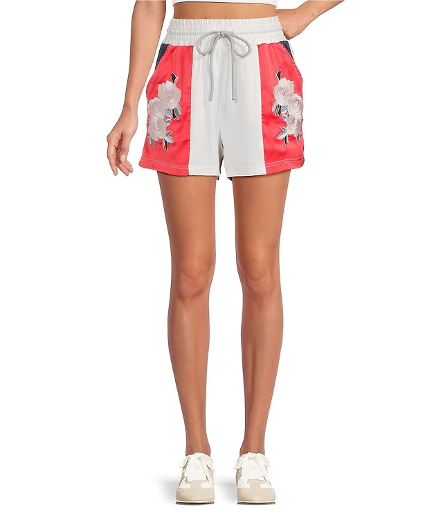 Pacsun Tinted Cherry Embroidered High Waisted Denim Festival Shorts