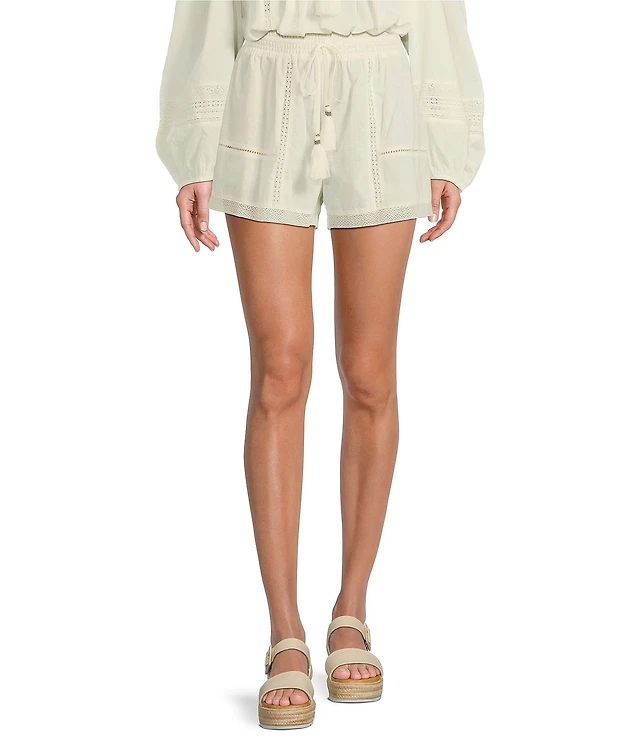 EDIKTED Rye Sheer Textured Fold Over Shorts - BEIGE