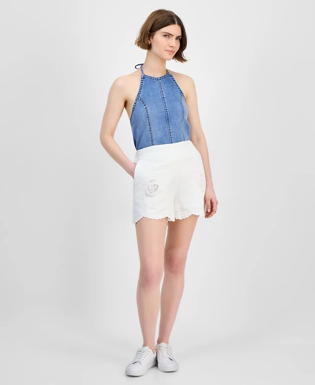 Dkny Jeans Women's Cotton Belted Paperbag-Waist Shorts