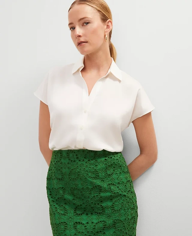 Ann Taylor Lace Bubble Hem Blouse Winter White Women's
