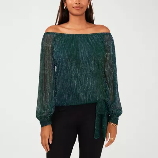 MSK Plus Off The Shoulder Womens Straight Neck Long Sleeve Blouse