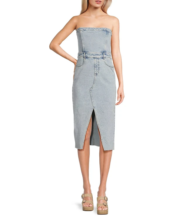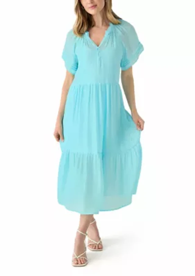 Westbound Smocked Denim Y-Neck Shirt Dress