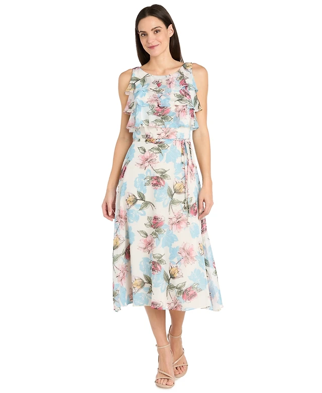 R & M Richards Women's Floral-Print Sleeveless Dress