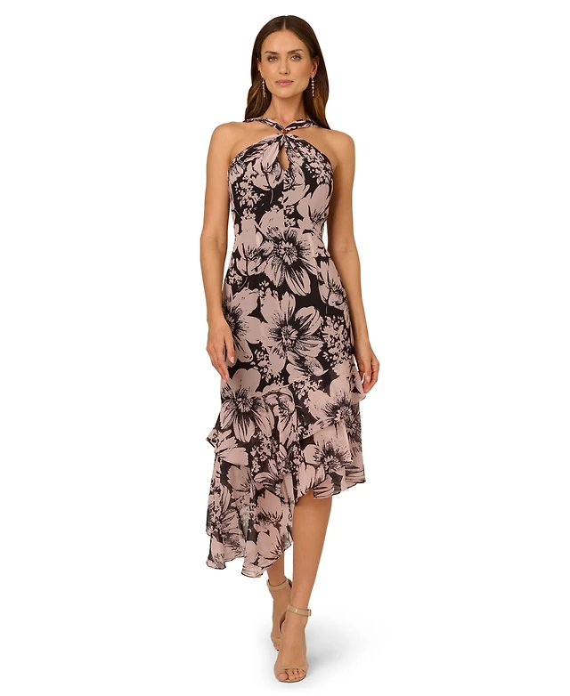 Adrianna Papell Women's Halter Chiffon Midi Dress