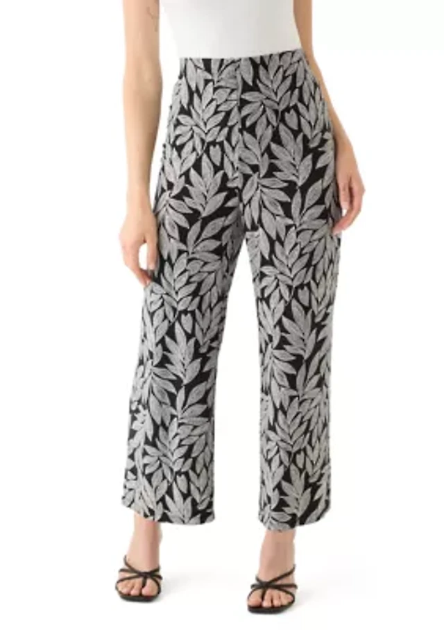 Calessa Petite Size Woven Autumn Floral Garden Print Coordinating Wide Leg Pull-On Pants