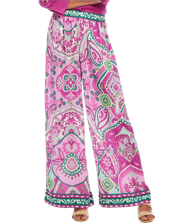 Caroline Rose Coordinating Floral Print Satin Wide Leg Pull-On Pants