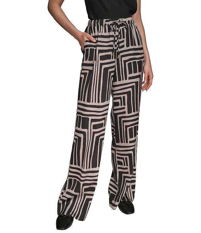 Donna Karan Coordinating Printed Satin Back Crepe Wide Leg Pants