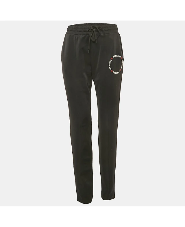 Pre-Owned Love Moschino Women's Black Logo Printed Jersey Track Pants