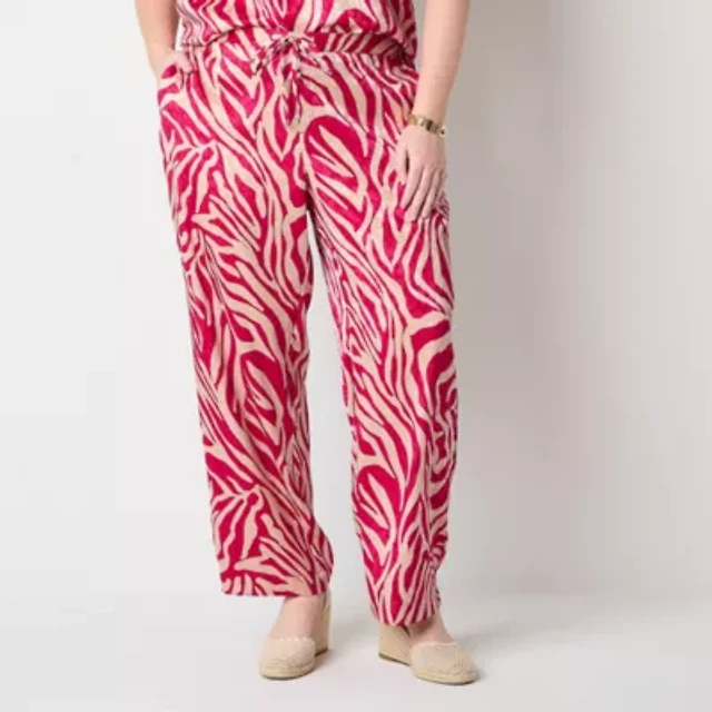 Liz Claiborne Linen Womens Plus Wide Leg Mid Rise Drawstring Pant