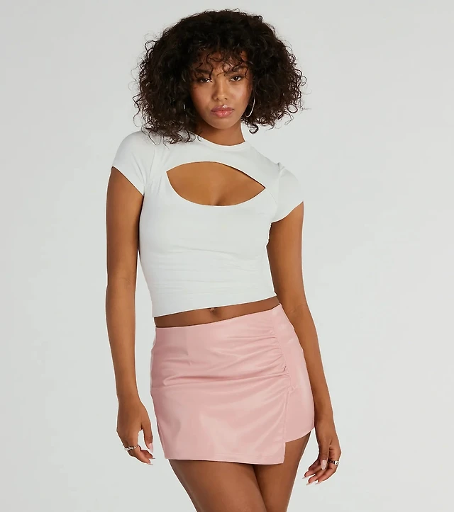 High Waisted Medium Wash Wrap Mini Denim Skort