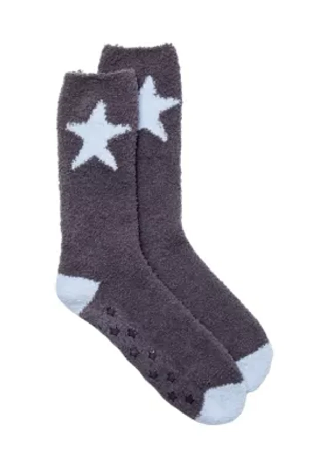 MeMoi Women's "Daisies" Non-Skid Lavender Infused Crew-Length Cozy Spa Sock